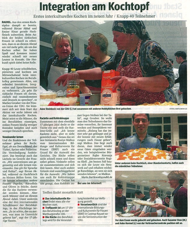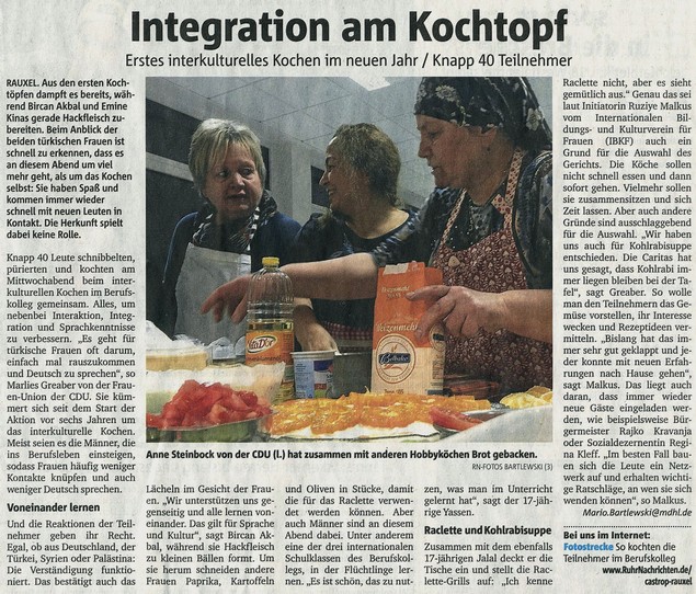 Integration am Kochtopf - Erstes interkulturelles Kochen im neuen Jahr - Menschen unterschiedlicher Herkunft können beim Zubereiten von Essen im Berufskolleg voneinander lernen |